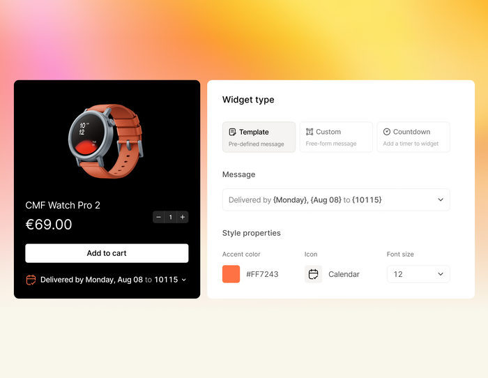 The widget automatically adopts your theme colors. Want to go further? Customize via CSS. You can also tailor its visibility, fallback messaging, and even language to match your customer’s locale.
